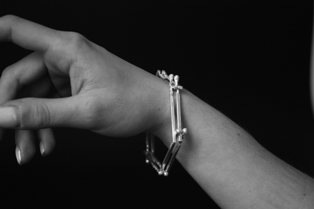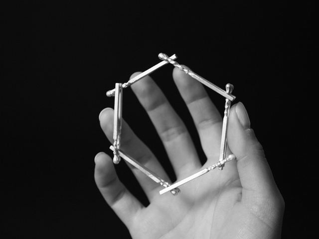 Bracelet en Argent 950, ensemble d'allumettes en argent soudées sous forme hexagonale.